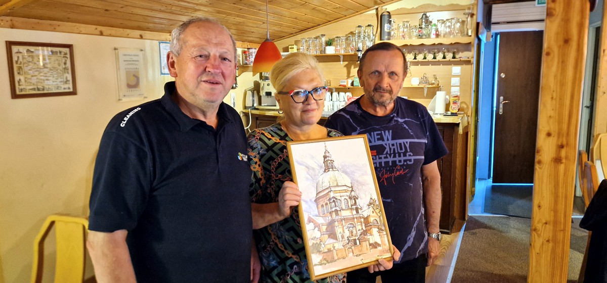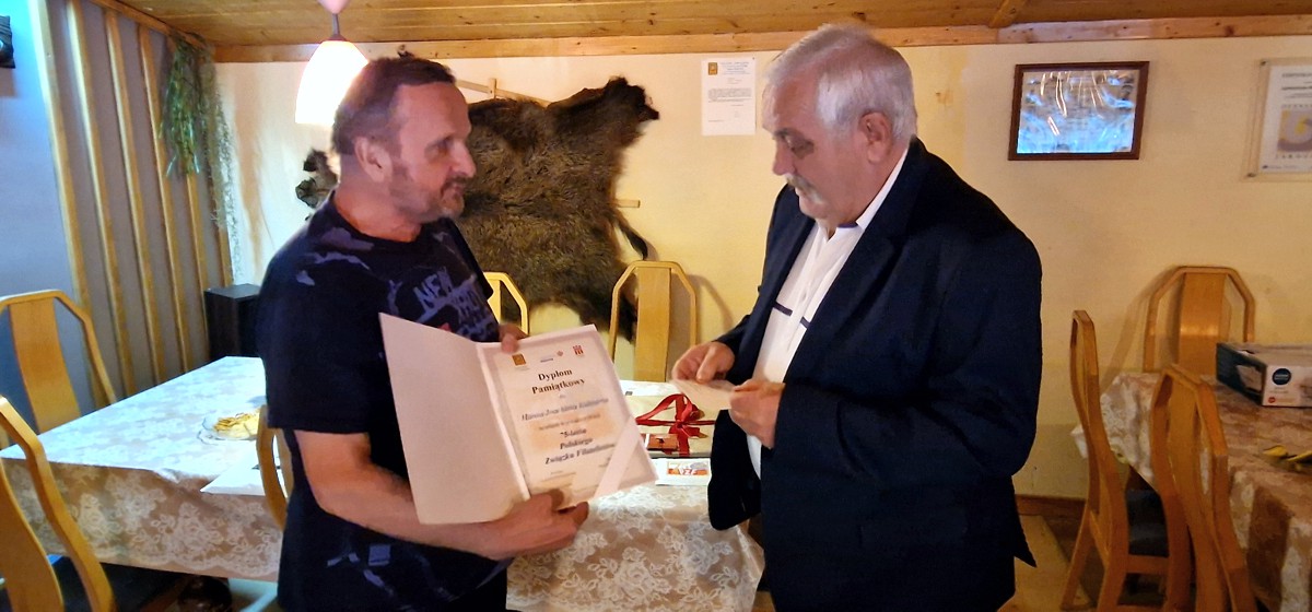 Wyjazd gostyńskich filatelistów na Dolny Śląsk był też zaplanowany jako dziesiąte spotkanie z kamiennogórskimi kolekcjonerami u „Michałka” w Opawie. Andrzej Dudek — prezes Koła PZF w Gostyniu wręczył Hansowi Joachimowi Kuhnertowi odznakę 75-lecia Polskiego Związku Filatelistów oraz dyplom pamiątkowy za udział w pokazie „75 lat Polskiego Związku Filatelistów 1950–2025” w Gostyniu, gdzie zaprezentował dwa eksponaty — „Raz na ludowo” i „Ciekawostki o rybach”. Jubileuszową odznaką zostali też wyróżnieni Iwona i Tomasz Stasikowscy, właściciele gospodarstwa agroturystycznego „Michałek”, wspierający kontakty gostyńsko-kamiennogórskie. Wszyscy uczestnicy wyjazdu na Dolny Śląsk otrzymali upominki ufundowane przez Muzeum Tkactwa w Kamiennej Górze oraz tamtejszych filatelistów z Kamiennej Góry.
