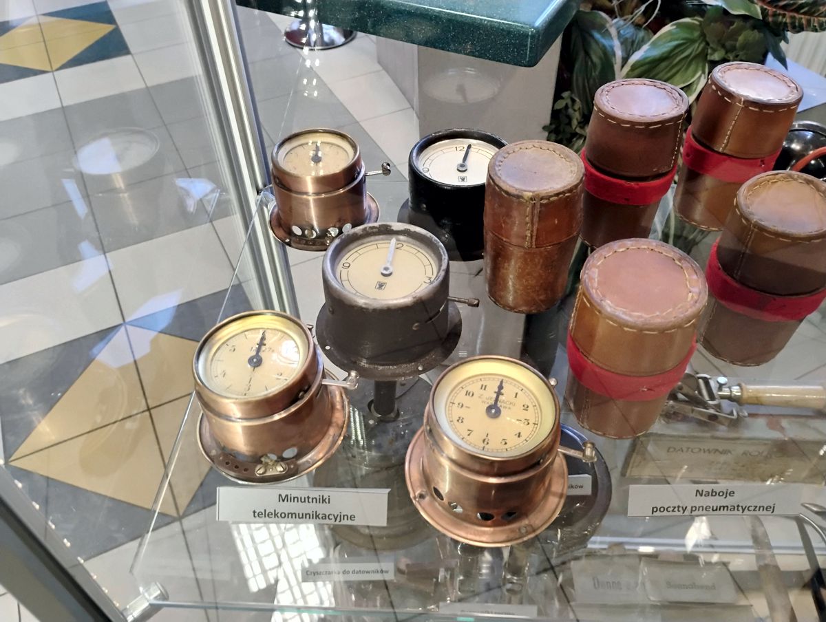 Część z nich znalazła się na wystawie. Można tam zobaczyć na przykład dawne skrzynki pocztowe. Najstarsze i najładniejsze pochodzą z czasów sprzed II wojny światowej — to niemieckie skrzynki wykonane z żeliwa. Część z nich po wojnie przejęli polscy pocztowcy, zasłaniając albo usuwając niemieckie oznakowania. Z nieco późniejszych czasów pochodzą aparaty telefoniczne na monety i żetony. Wciąż działają, można z nich zadzwonić, choć młodzi ludzie często dziwią się, jak działa aparat, który zamiast klawiatury ma tarczę. Podobnie działającymi eksponatami są automaty sprzedające znaczki i kartki pocztowe ze schyłkowego okresu PRL. Na ekspozycji można zobaczyć także drobniejsze pamiątki pocztowe: stemple, wagi do listów, akcesoria do szycia i rozcinania worków z pocztą czy naboje do poczty pneumatycznej, w którą wyposażone były większe urzędy pocztowe, takie jak ten w Lesznie.