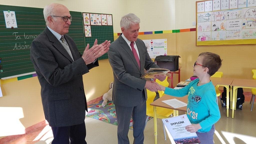 Od lewej: Tadeusz Nawrocki, członek komisji konkursowej, Lech Woźny i Mateusz Tyczewicz, uczeń kl. I Szkoły Podstawowej nr 2 w Lesznie